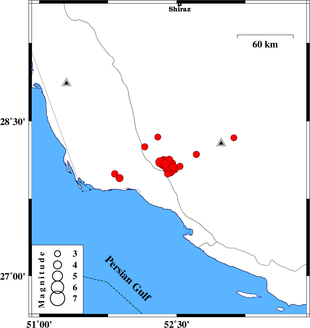 2025/01/30 10:57:16.4 14:27:16.4 28.34752.29512 ML:3.1 Fars Province, 57 km North of Jam