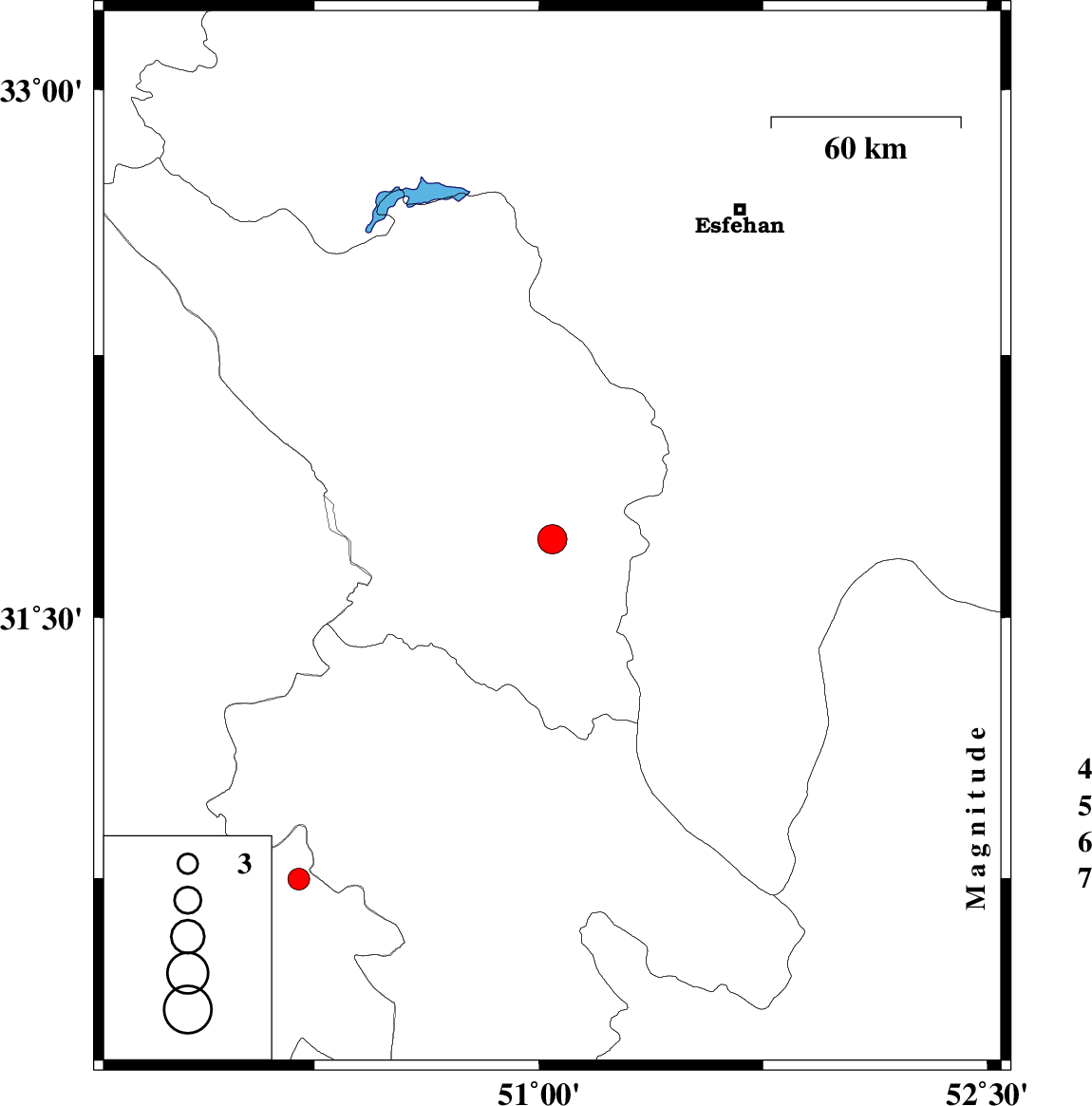 | 2025/04/06 | 03:20:24.7 | 06:50:24.7 | 31.724 | 51.045 | 7 | ML:4.4 | Chaharmahal Bakhtiari Province, 34 km North-East of Lordegan | ||