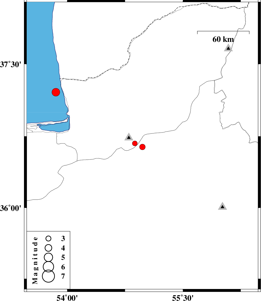 2025/09/27 | 12:04:46.0 | 15:34:46.0 | 37.209 | 53.853 | 14 | ML:4.7 | Caspian Sea, 39 km North-West of Bandar-e torkaman | ||