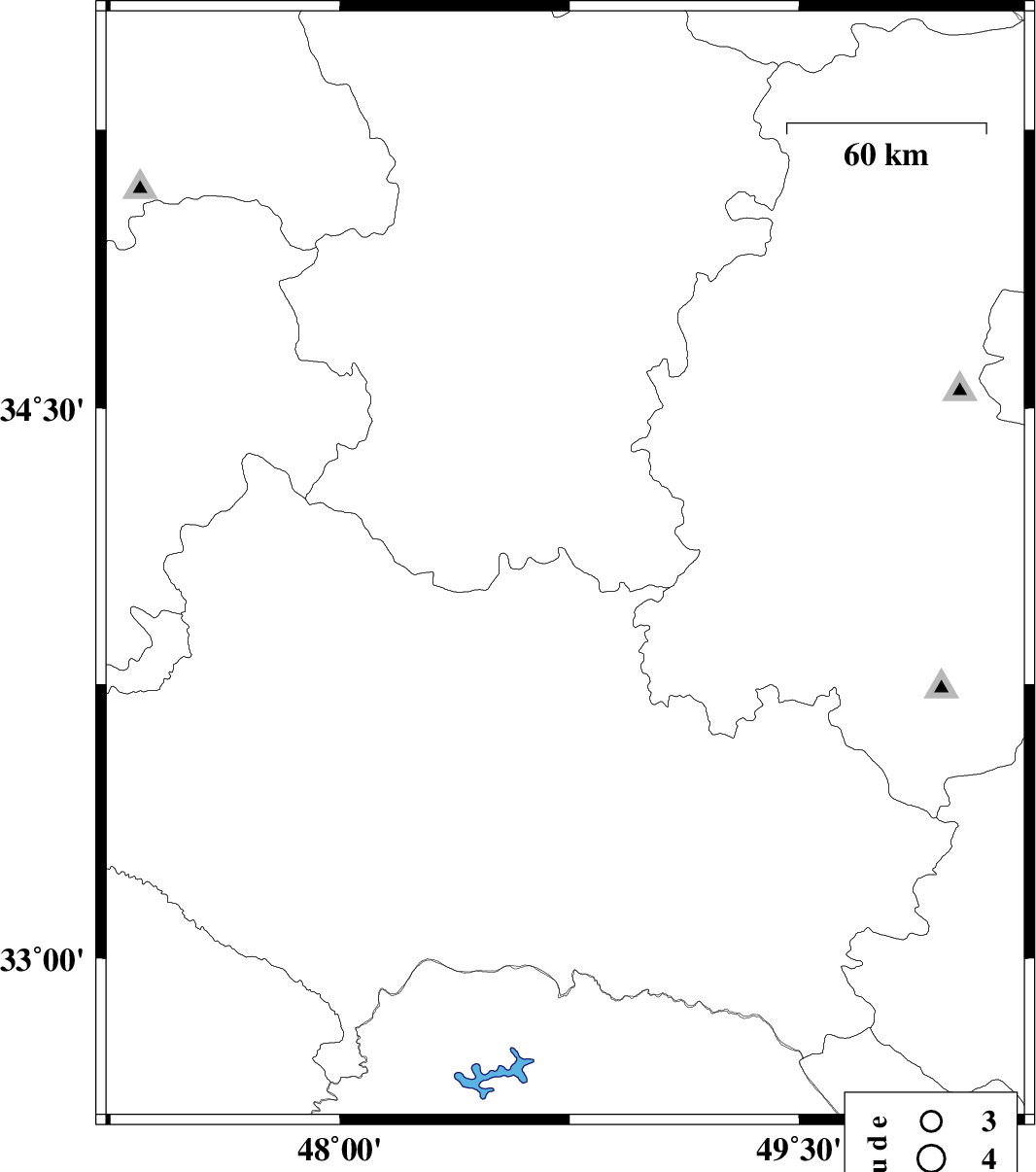 2025/09/12 | 04:18:45.2 | 07:48:45.2 | 33.419 | 48.934 | 12 | ML:3.5 | Lorestan Province, 15 km -West of Dorud |
