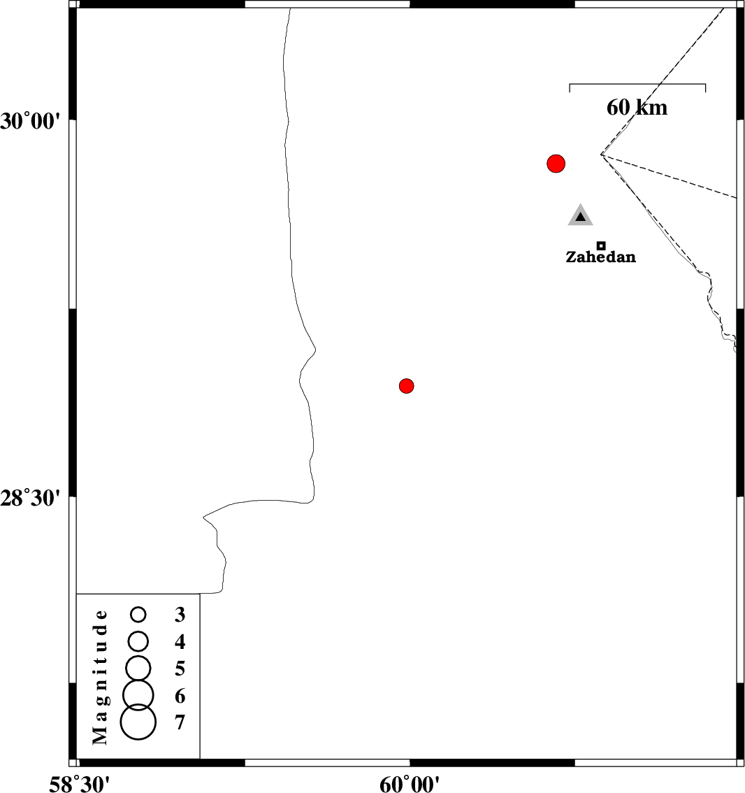 | 2025/09/18 | 15:02:27.4 | 18:32:27.4 | 29.826 | 60.664 | 12 | ML:3.7 | Sistan va Baloochestan Province, 41 km North-West of Zahedan |
