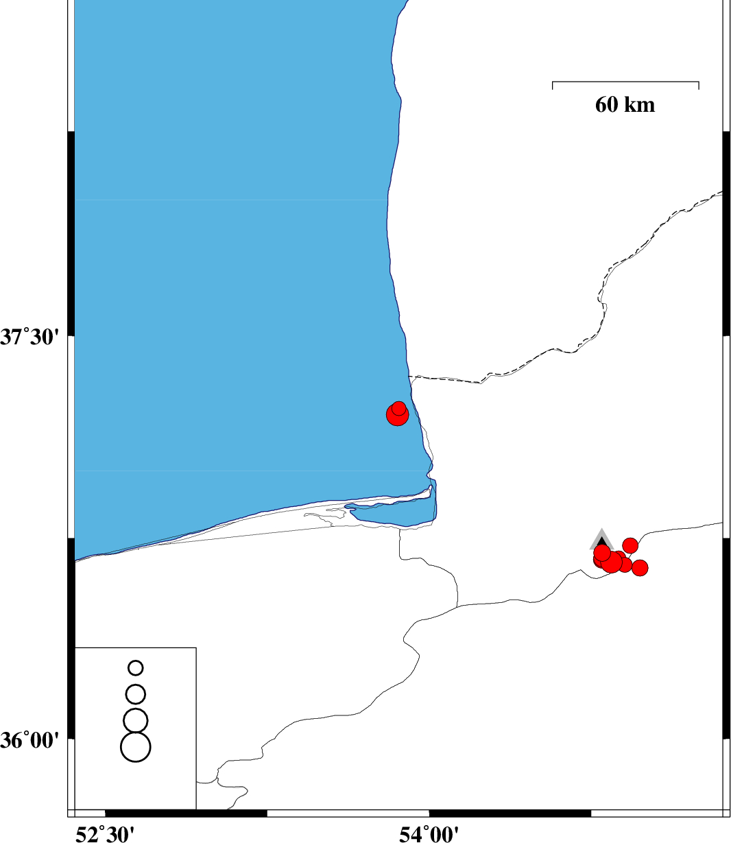 Caspian Sea, 39 km North-West of Bandar-e torkaman | |