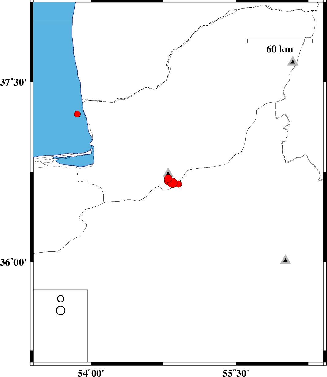 2025/10/20 12:00:20.3 15:30:20.3 36.69654.8019 ML:3.5 Golestan Province, 24 km South of Ali Abad