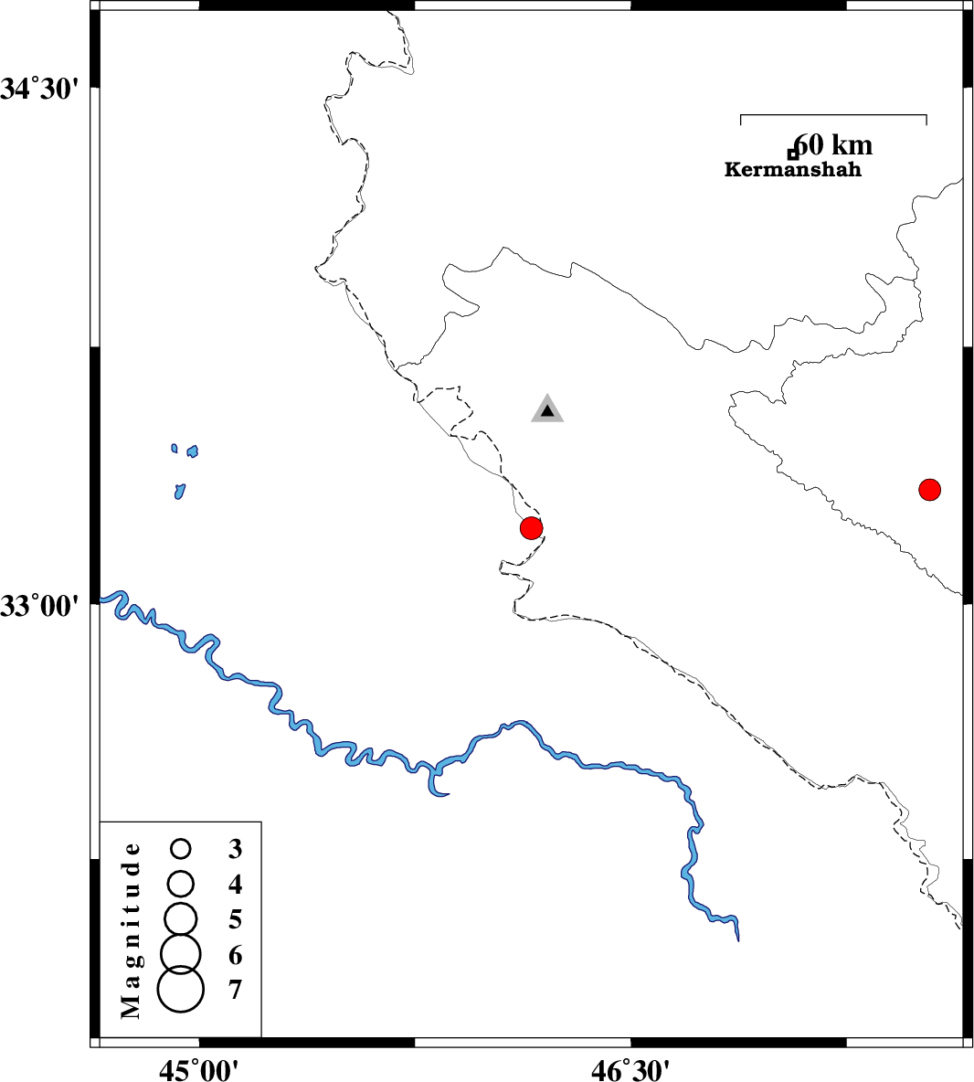 | 2025/10/20 | 06:15:14.1 | 09:45:14.1 | 33.334 | 47.539 | 12 | ML:3.4 | Lorestan Province, 23 km South of Kuhdasht |