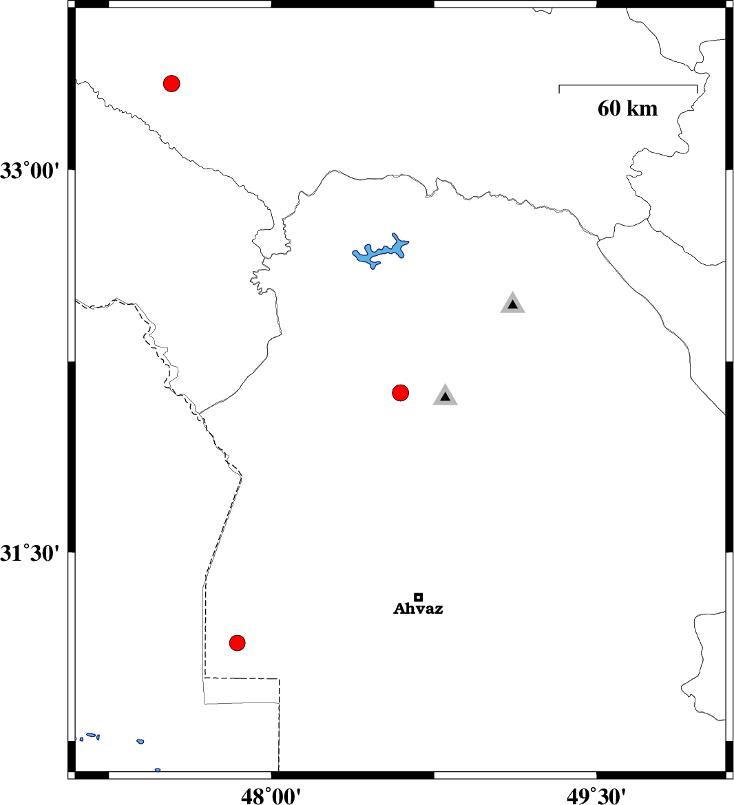 | 2025/10/17 | 09:09:17.2 | 12:39:17.2 | 31.14 | 47.842 | 10 | ML:3.2 | Khoozestan Province, 69 km North of Al Basrah |