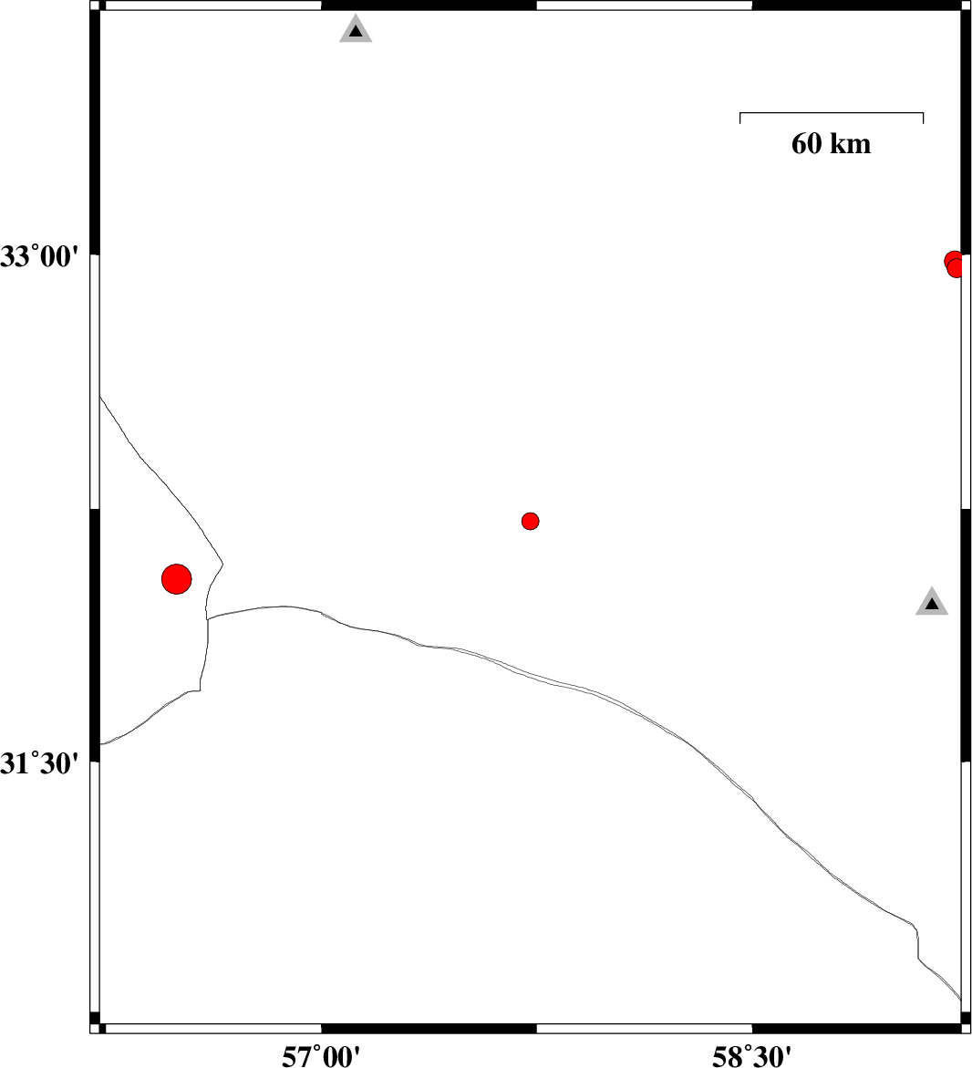 | 2025/11/17 | 10:54:38.5 | 14:24:38.5 | 32.214 | 57.727 | 12 | ML:2.7 | Yazd Province, 136 km North-East of Ravar | ||
