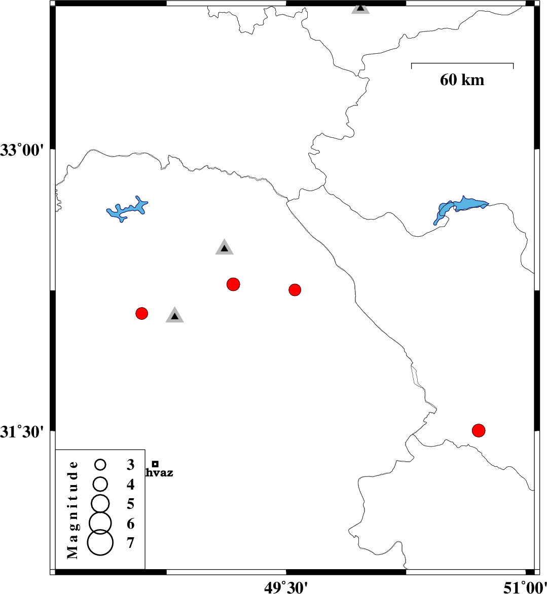 | 2025/11/18 | 05:43:36.2 | 09:13:36.2 | 32.253 | 49.553 | 12 | ML:3.4 | Khoozestan Province, 43 km North-East of Masjed Soleyman | ||
