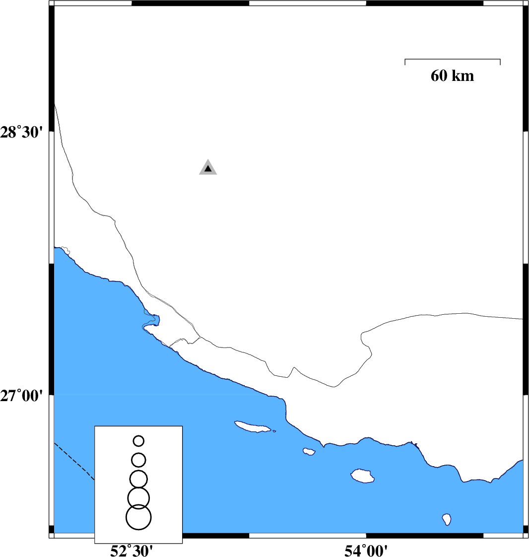 | 2020/07/10 | 20:14:07.5 | 00:44:07.5 | 27.59 | 53.41 | 16 | ML:4.6 | Fars Province, 37 km North-East of Lamerd | ||