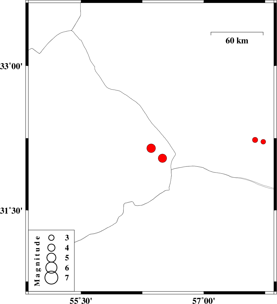 | 2025/11/17 | 10:54:38.5 | 14:24:38.5 | 32.214 | 57.727 | 12 | ML:2.7 | Yazd Province, 136 km North-East of Ravar | ||