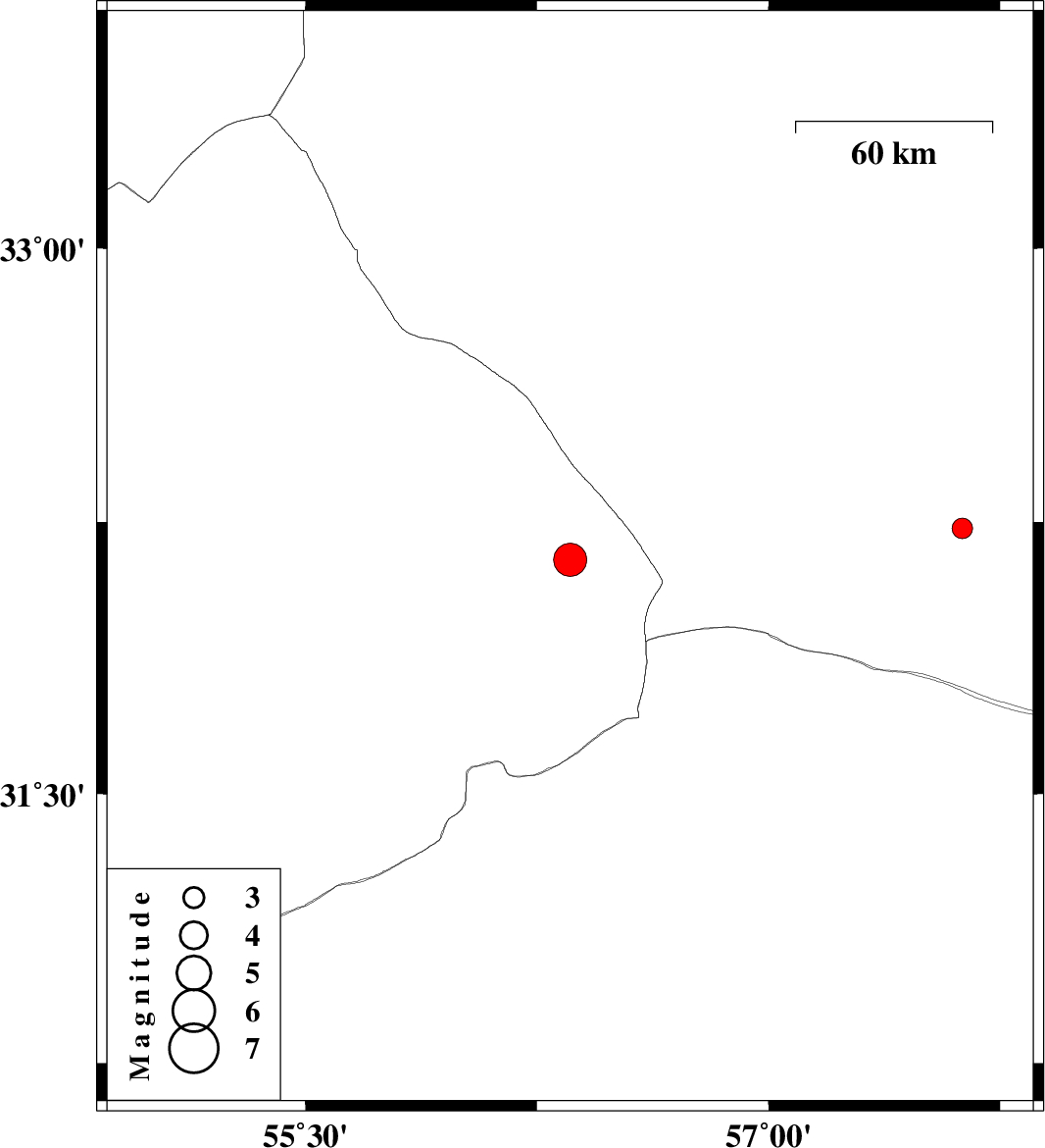 | 2025/11/27 | 21:41:52.2 | 01:11:52.2 | 32.146 | 56.357 | 19 | ML:4.8 | Yazd Province, 107 km North-West of Ravar | ||