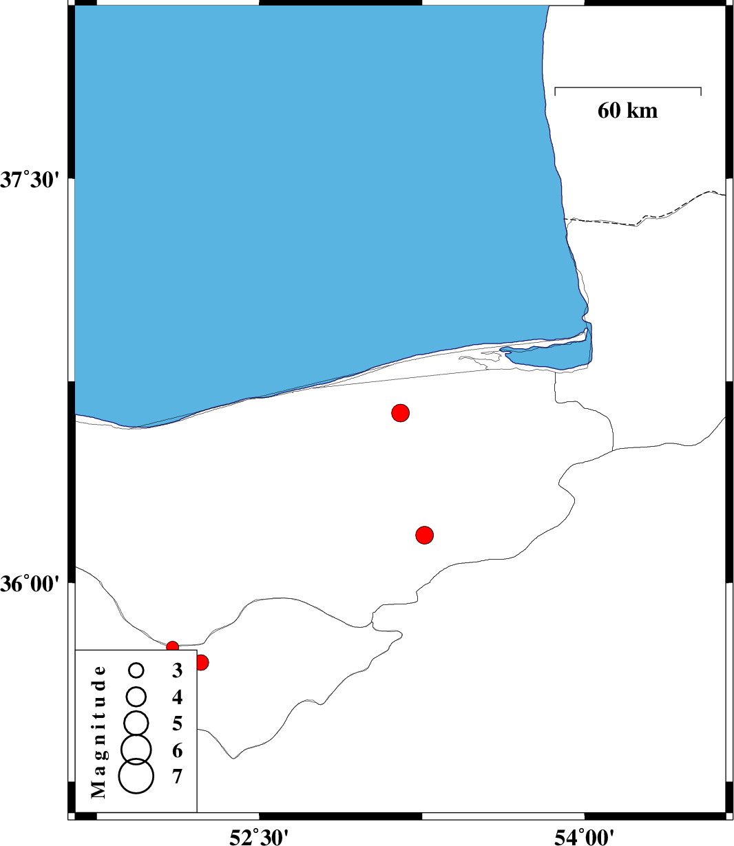 | 2025/11/28 | 00:35:48.7 | 04:05:48.7 | 36.177 | 53.261 | 7 | ML:3.7 | Mazandaran Province, 20 km -East of Pol-E-Sefid | ||