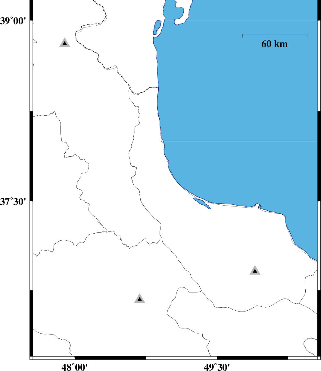 | 2025/11/24 | 07:26:34.6 | 10:56:34.6 | 37.689 | 49.059 | 12 | ML:3.1 | Caspian Sea, 18 km North of Rezvanshahr | ||