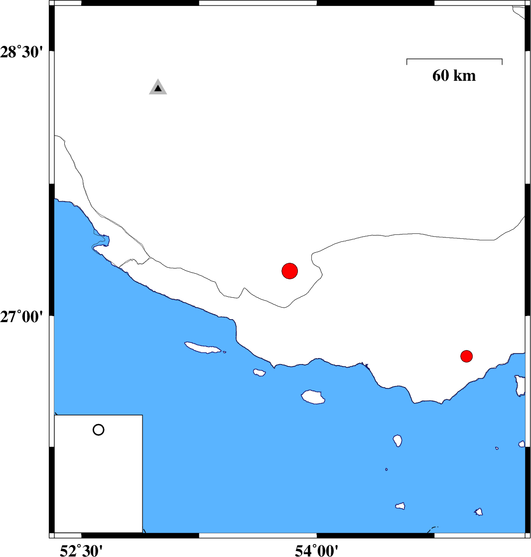 | 2025/12/19 | 02:15:59.6 | 05:45:59.6 | 26.769 | 54.954 | 12 | ML:3.4 | Hormozgan Province, 29 km North-East of Bandar-e lengeh |
