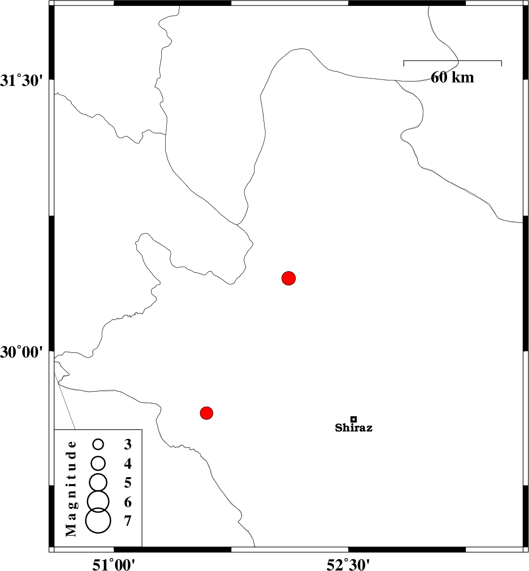 | 2025/12/24 | 10:08:52.3 | 13:38:52.3 | 29.654 | 51.592 | 12 | ML:3.7 | Fars Province, 7 km of Kazerun |