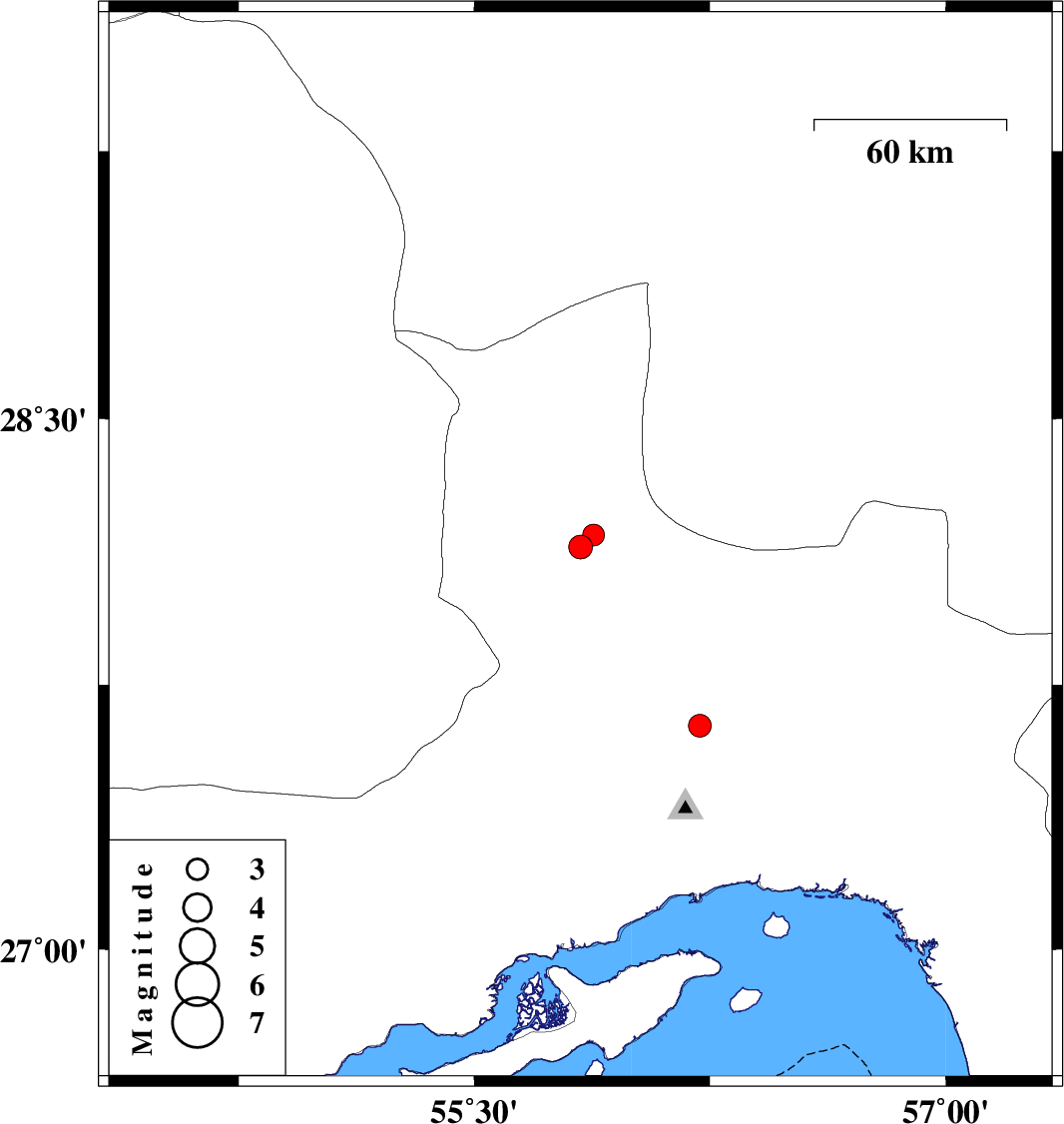 | 2026/01/02 | 04:56:42.7 | 08:26:42.7 | 27.634 | 56.218 | 17 | ML:3.2 | Hormozgan Province, 50 km North of Bandar-e abbas | ||