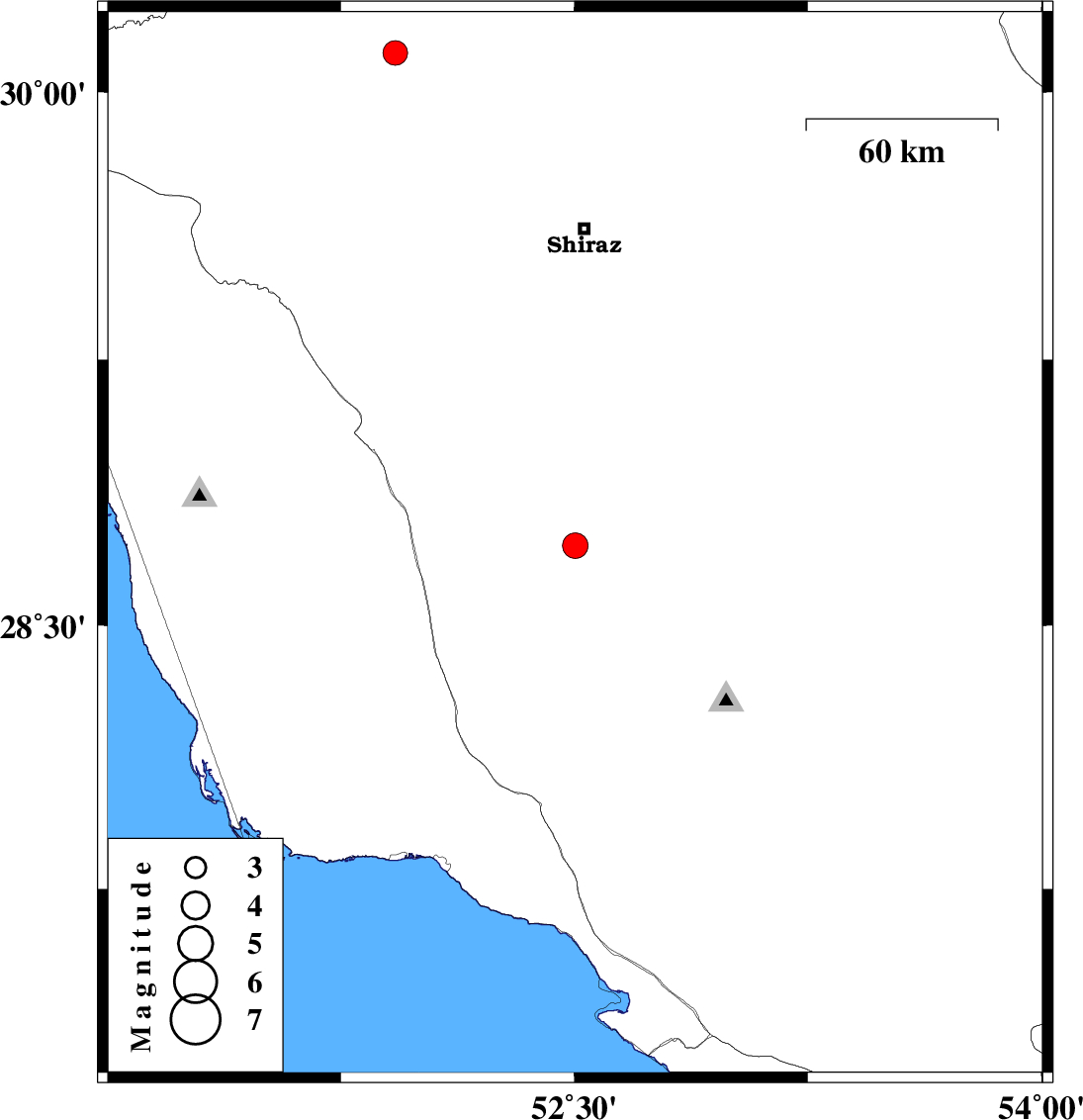 | 2026/01/11 | 01:21:00.9 | 04:51:00.9 | 28.726 | 52.503 | 8 | ML:3.7 | Fars Province, 14 km South of Firuz Abad | ||