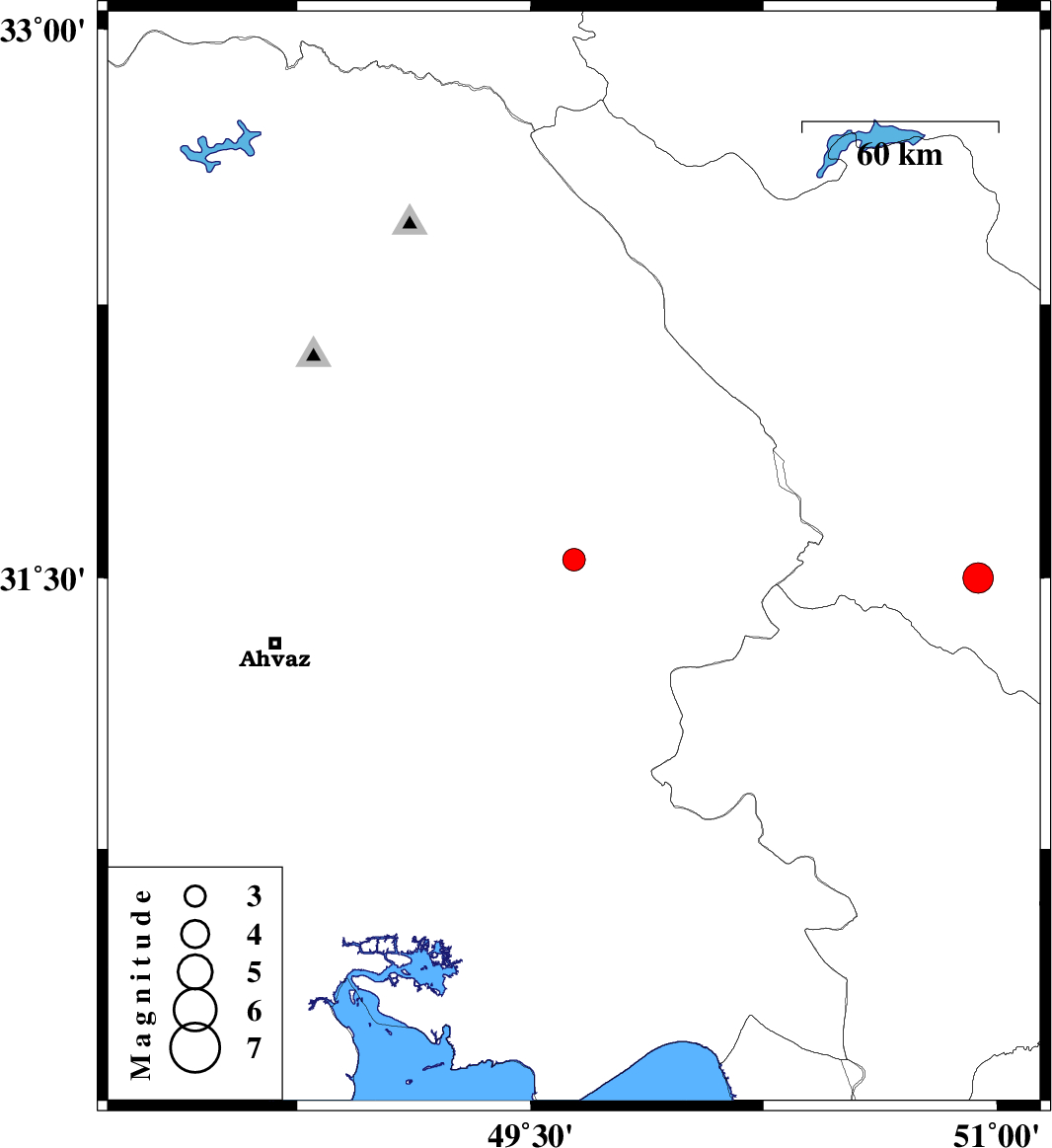 | 2007/02/22 | 02:09:05.0 | 05:39:05.0 | 31.5 | 50.94 | 18 | ML:4.4 | 12 km East of Lordegan, Chaharmahal Bakhtiari Province |