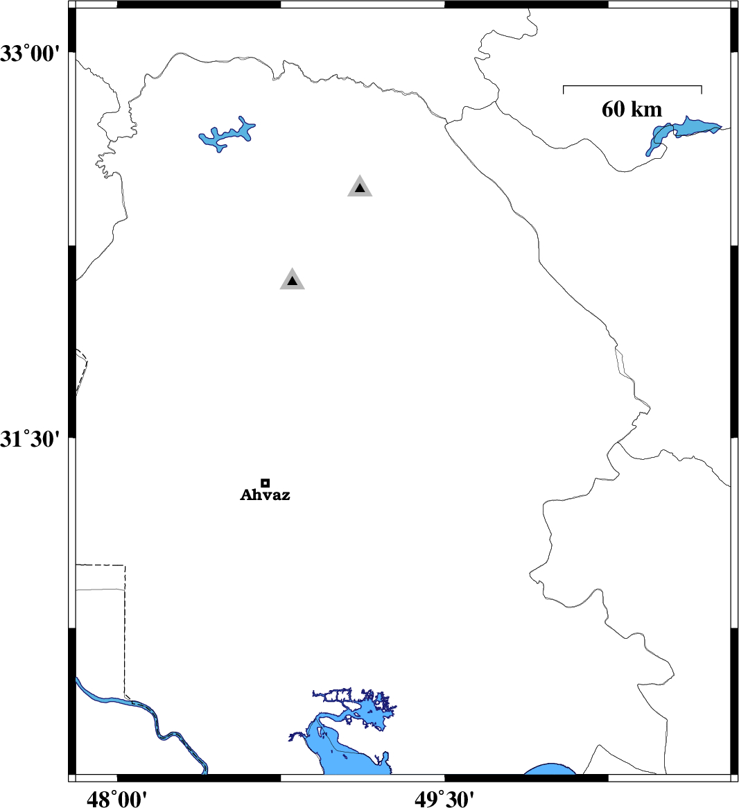 | 2007/03/06 | 05:53:59.6 | 09:23:59.6 | 31.6 | 50.03 | 25 | ML:2.9 | 15 km East of Bagh Malek, Khoozestan Province |