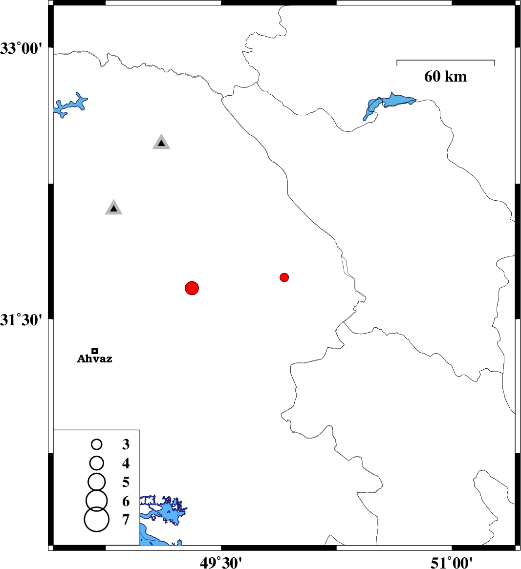 | 2007/03/11 | 13:48:42.7 | 17:18:42.7 | 31.67 | 49.31 | 14 | ML:4 | 29 km South of Masjed Soleyman, Khoozestan Province |