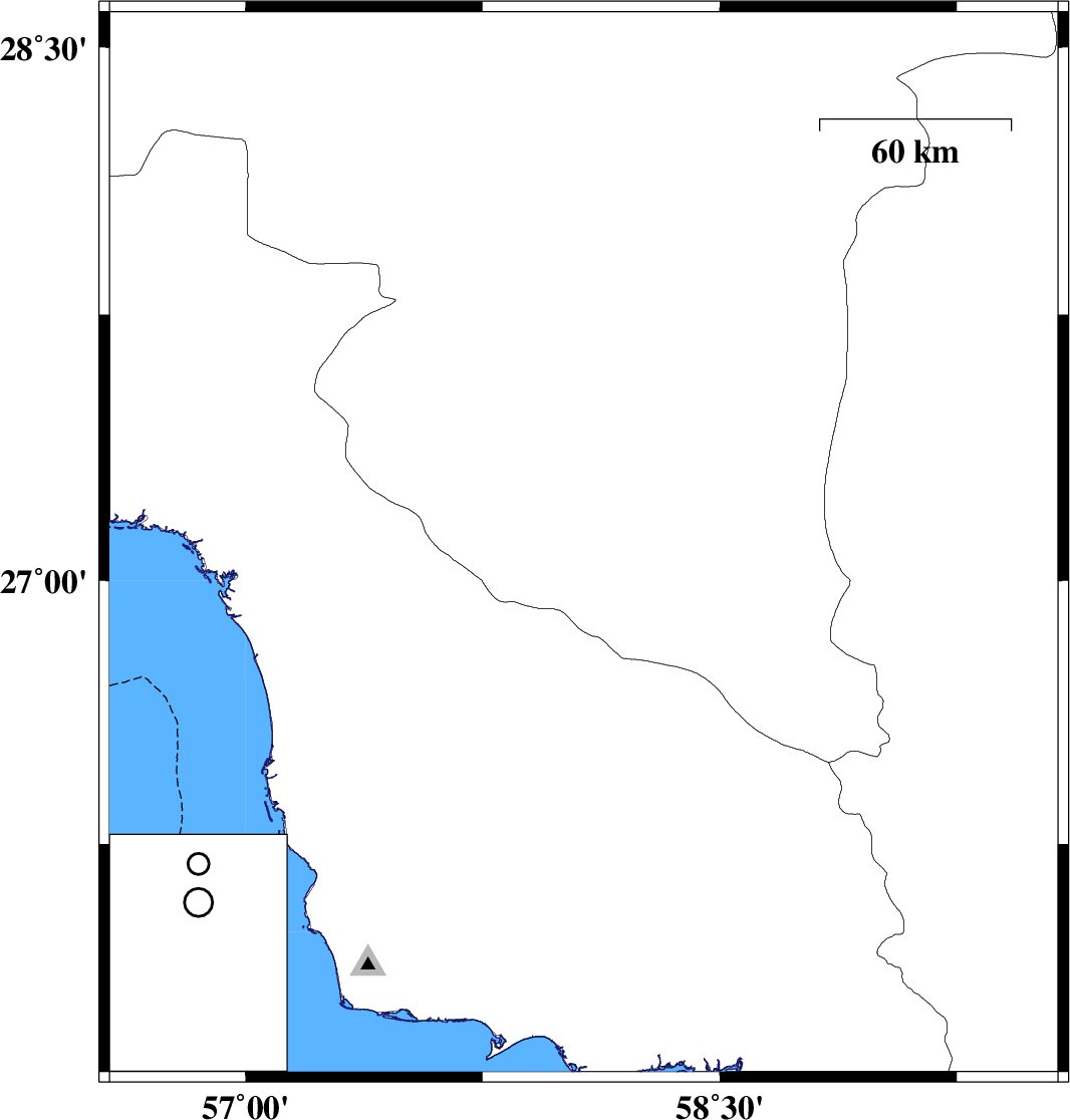Map Region : lat:25.6-28.6 lon:56.57-59.57