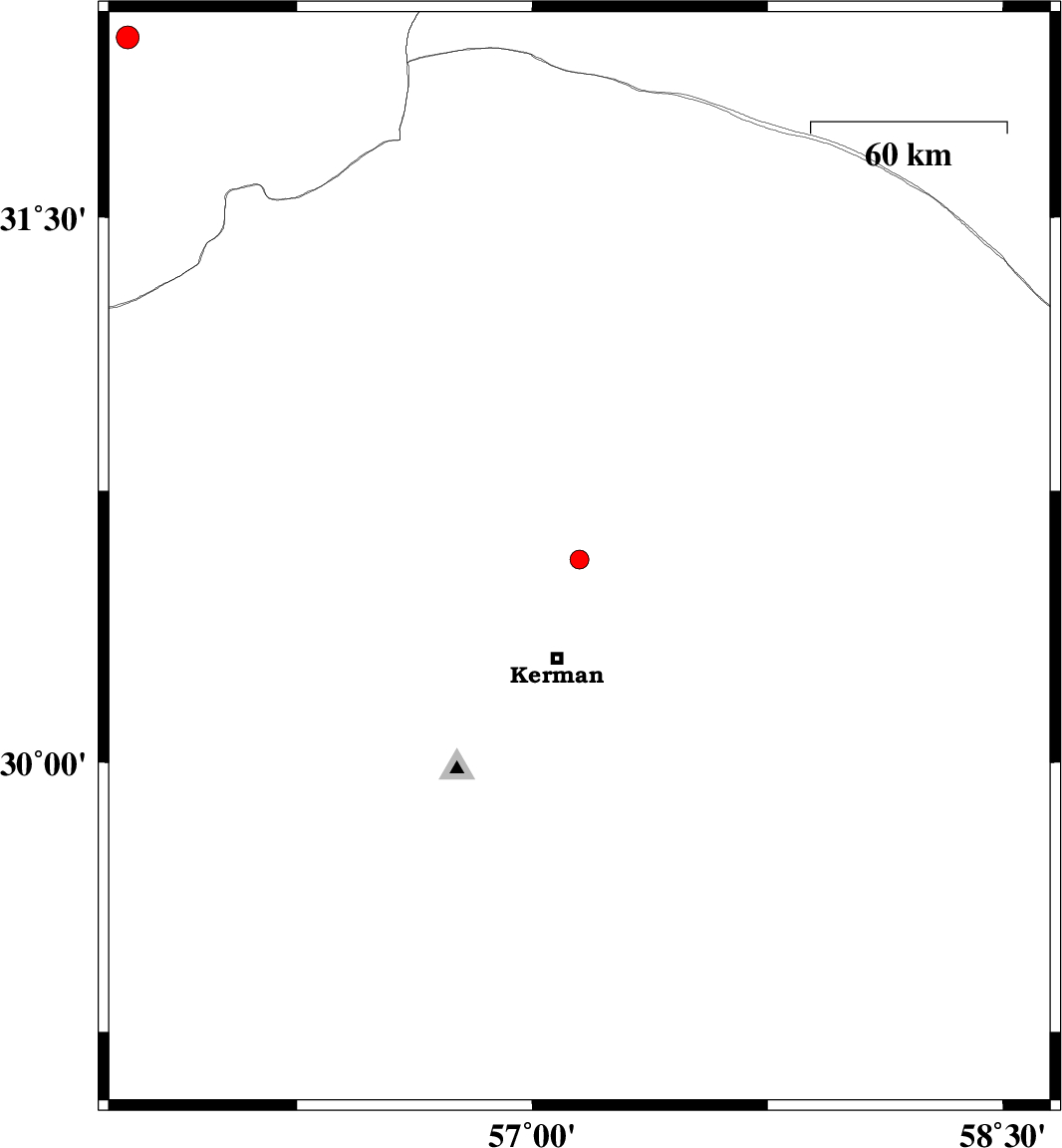 | 2007/03/20 | 22:25:46.2 | 01:55:46.2 | 30.56 | 57.15 | 14 | ML:2.7 | 31 km North of Kerman, Kerman Province | ||