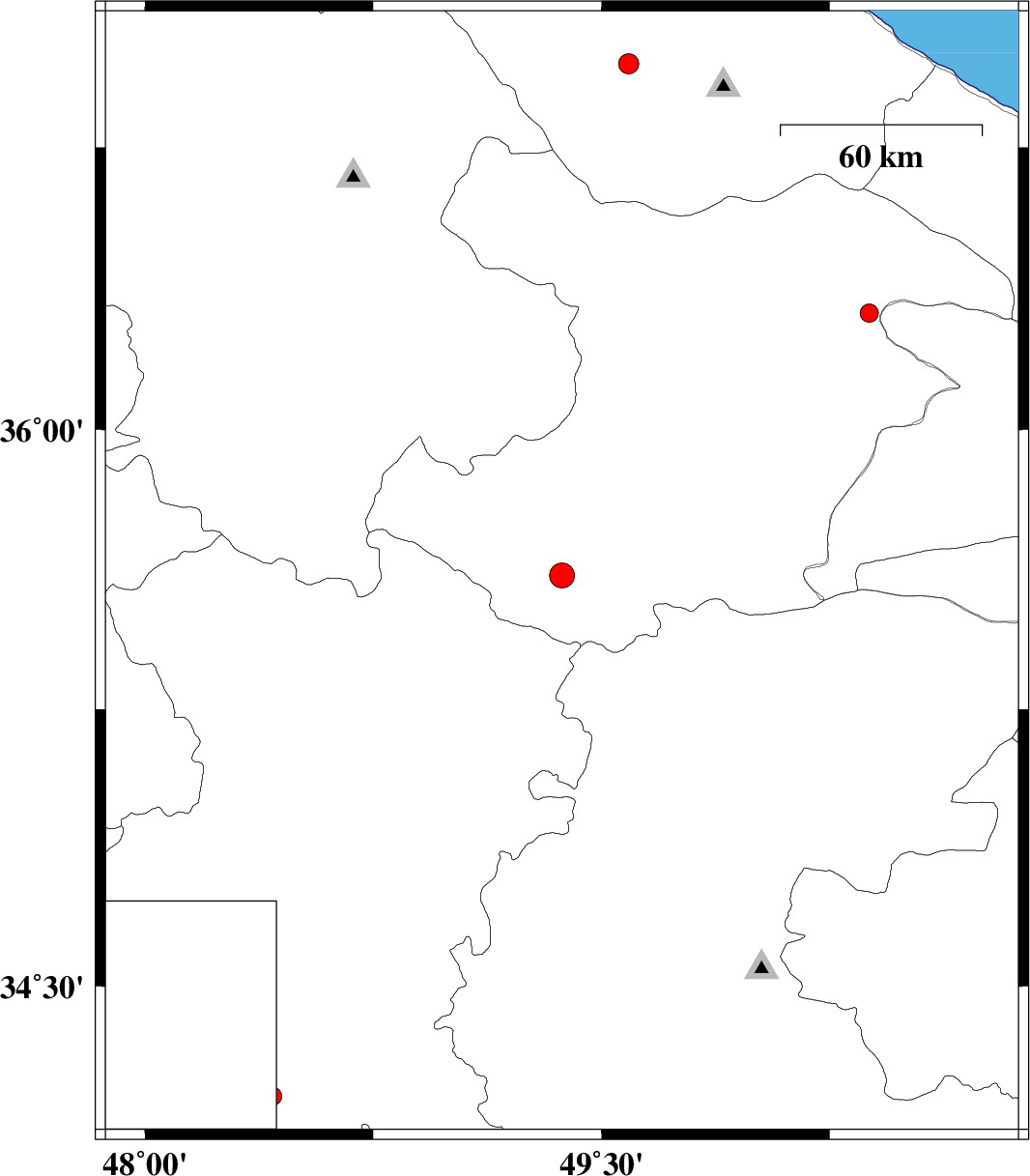 | 2007/03/20 | 09:22:48.0 | 12:52:48.0 | 36.97 | 49.59 | 14 | ML:3 | 22 km North-East of Rudbar, Gilan Province | ||