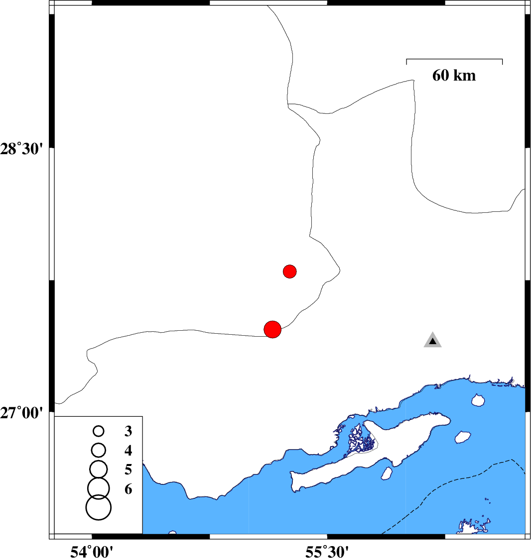 | 2007/03/23 | 21:38:02.1 | 01:08:02.1 | 27.47 | 55.15 | 15 | ML:4.9 | 83 km South-East of Lar, Fars Province | download |