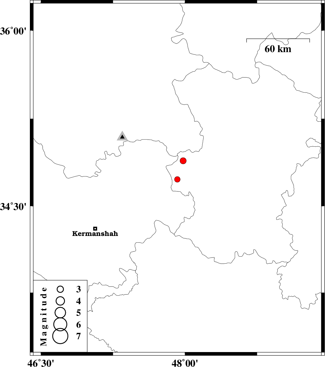 | 2007/06/08 | 03:50:00.6 | 07:20:00.6 | 34.73 | 47.92 | 14 | ML:2.7 | 18 km West of Asad Abad, Hamedan Province |