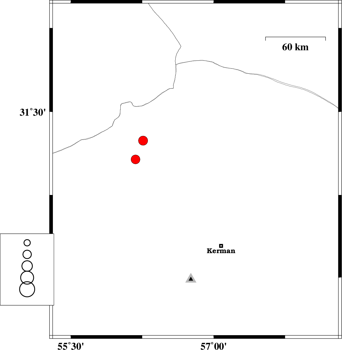 | 2007/04/08 | 11:22:21.5 | 14:52:21.5 | 30.97 | 56.81 | 15 | ML:4.4 | 28 km North-East of Zarand, Kerman Province | ||