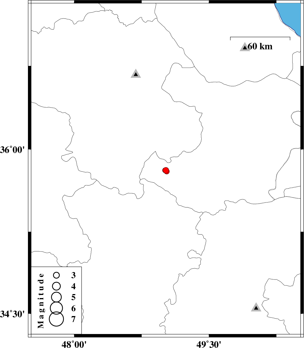 | 2007/05/07 | 09:16:46.1 | 12:46:46.1 | 35.81 | 49.01 | 15 | ML:2.6 | 41 km South-West of Abhar, Zanjan Province | ||