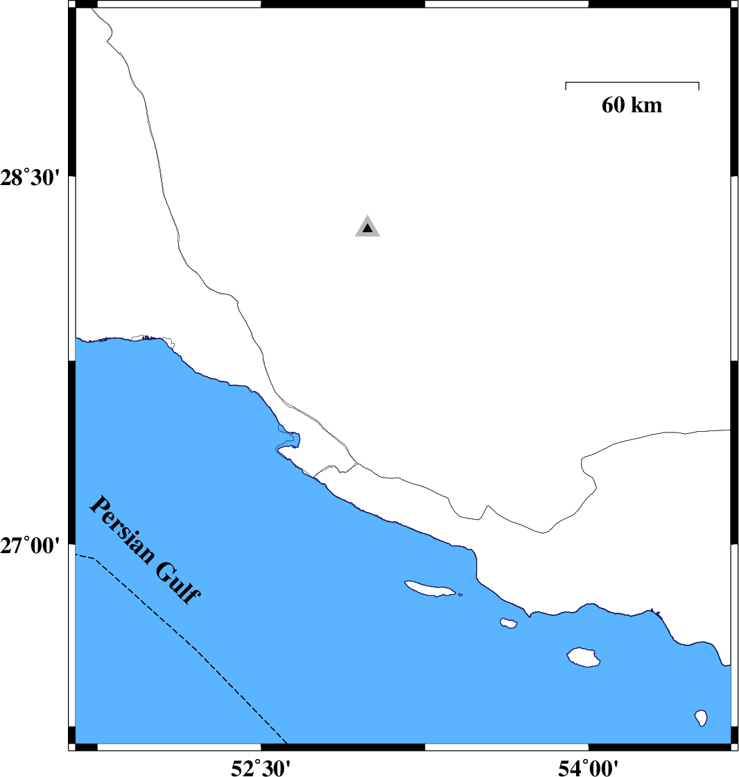 | 2007/05/12 | 08:17:27.5 | 11:47:27.5 | 27.08 | 54.63 | 46 | ML:3.5 | 29 km South-East of Bastak, Hormozgan Province |