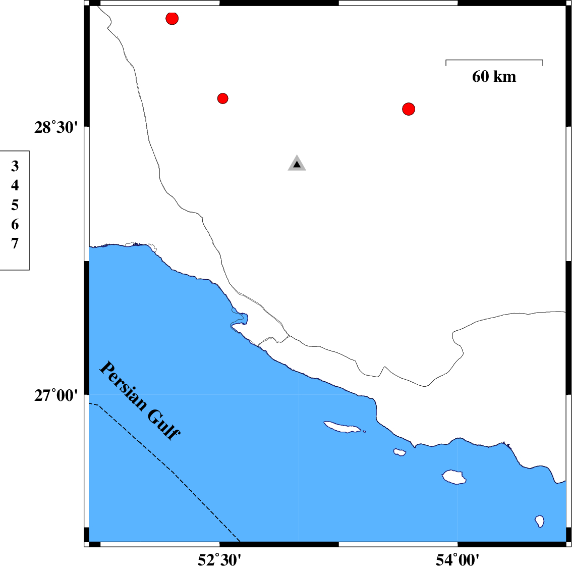 2007/04/26 22:18:10.6 01:48:10.6 27.9352.5812 ML:3.4 28 km East of Jam, Bushehr Province