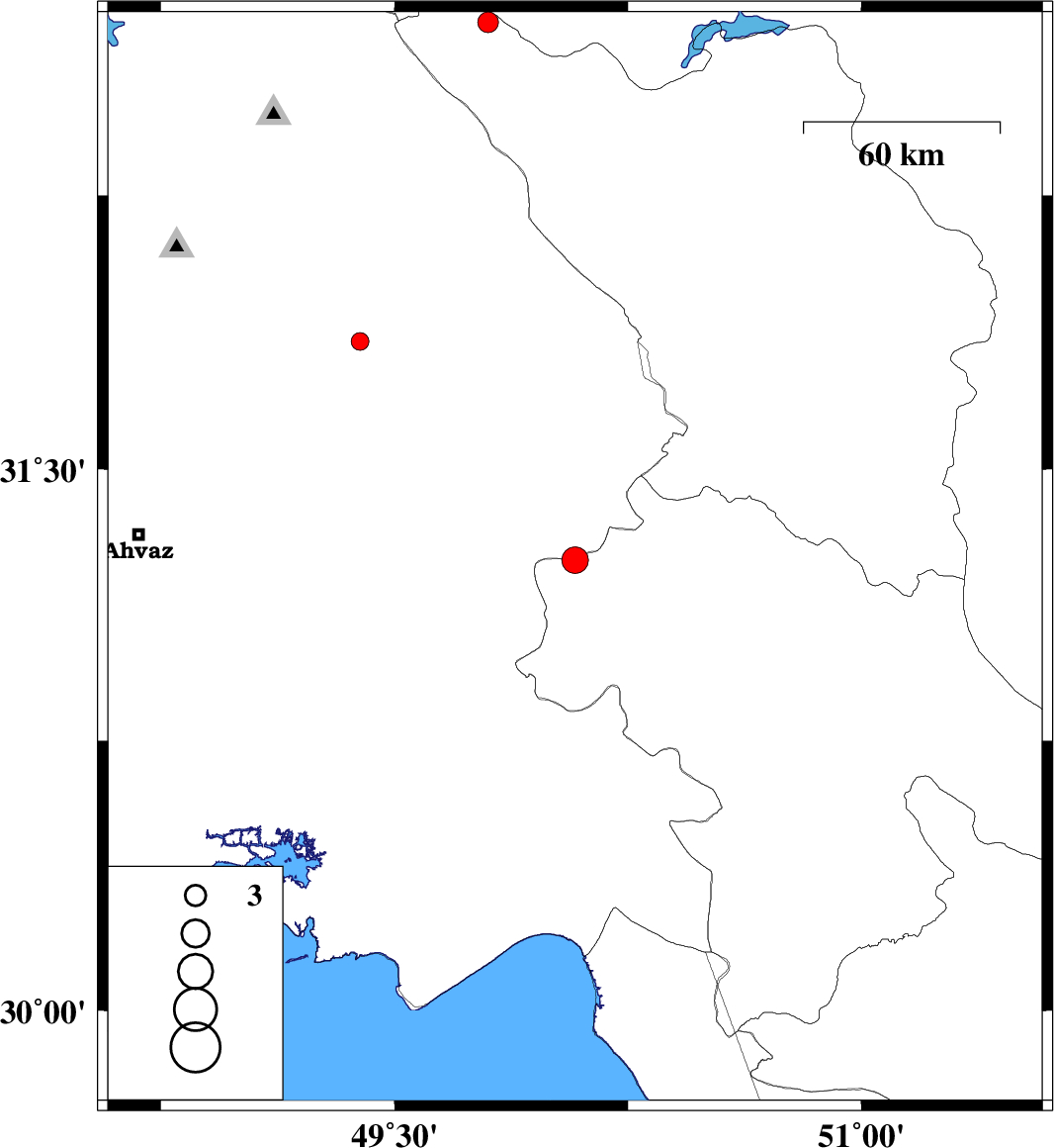 | 2007/06/17 | 20:17:51.1 | 23:47:51.1 | 31.85 | 49.39 | 45 | ML:2.6 | 11 km Masjed Soleyman, Khoozestan Province | ||