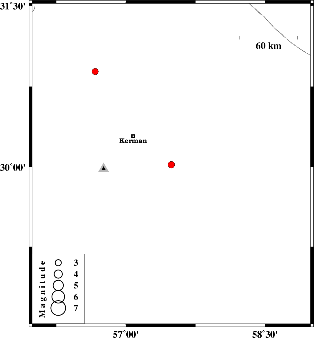 | 2007/05/27 | 20:44:17.1 | 00:14:17.1 | 30.02 | 57.49 | 16 | ML:3.3 | 49 km South-East of Kerman, Kerman Province | ||
