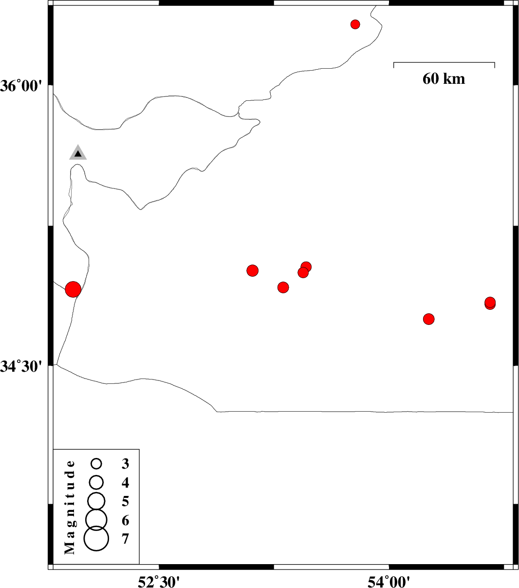 2007/09/04 16:15:36.6 19:45:36.6 3553.4414 ML:3.1 63 km South of Semnan, Semnan Province