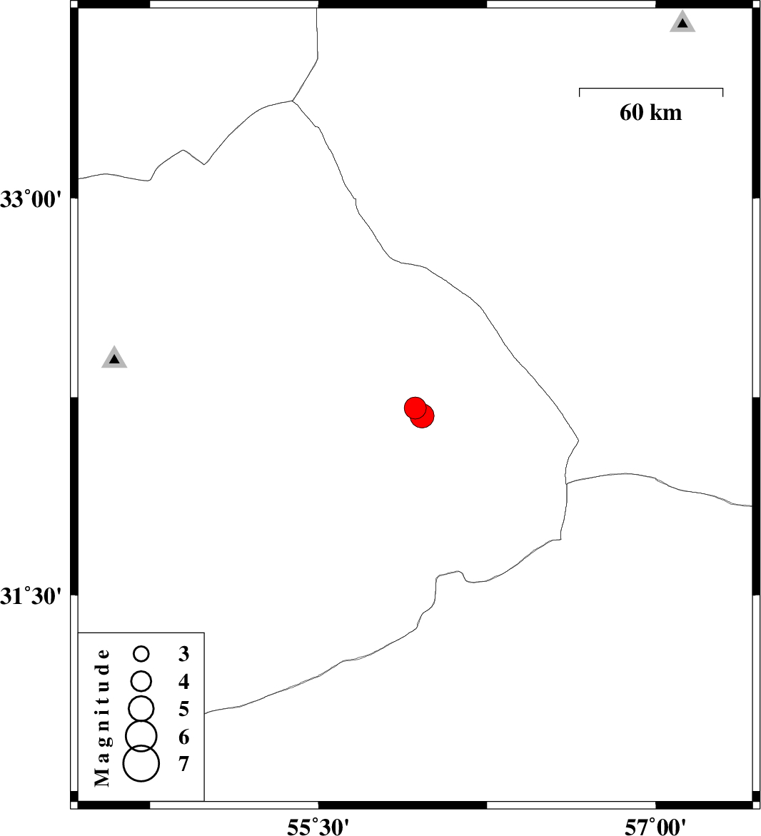 2007/07/04 09:51:33.6 13:21:33.6 32.2155.9314 ML:4.4 83 km North-East of Bafq, Yazd Province