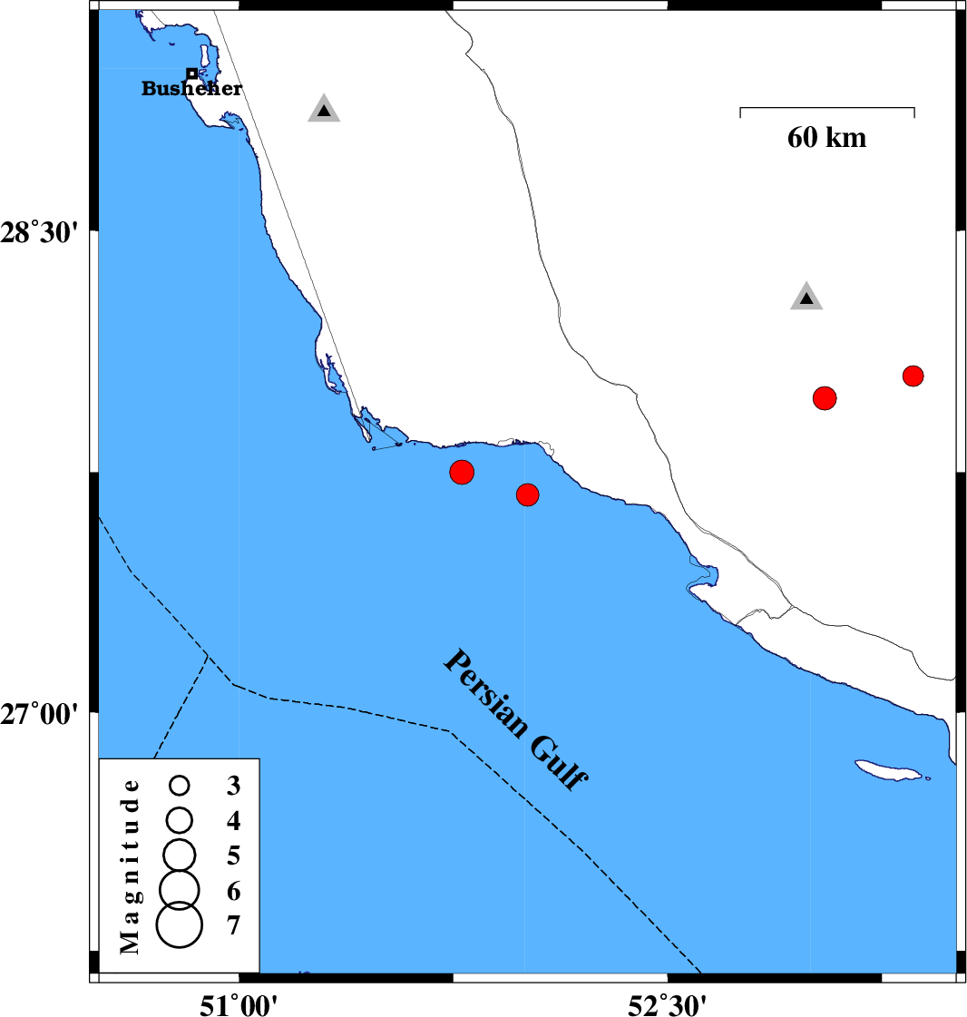| 2007/08/15 | 12:24:52.9 | 15:54:52.9 | 27.75 | 51.78 | 18 | ML:3.8 | Persian Gulf, 29 km West of Bandar-e kangan |