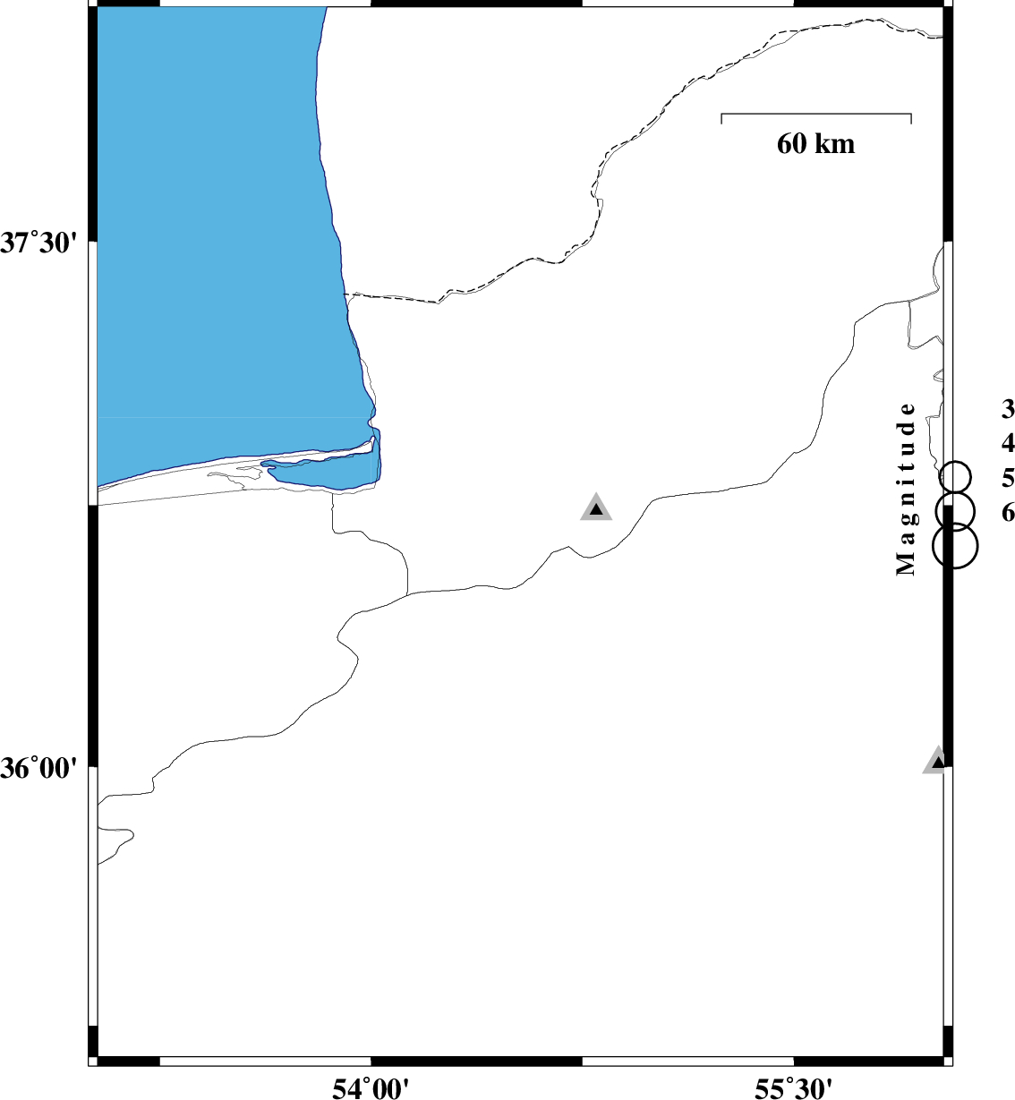 | 2007/09/06 | 09:54:30.8 | 13:24:30.8 | 36.93 | 54.43 | 14 | ML:3.6 | 9 km Aq Qaleh, Golestan Province | ||