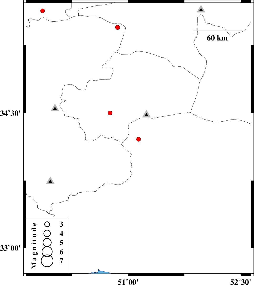 | 2007/09/16 | 15:14:23.5 | 18:44:23.5 | 34.21 | 51.14 | 24 | ML:2.6 | 33 km North-West of Aran va bidgol, Esfahan Province | ||