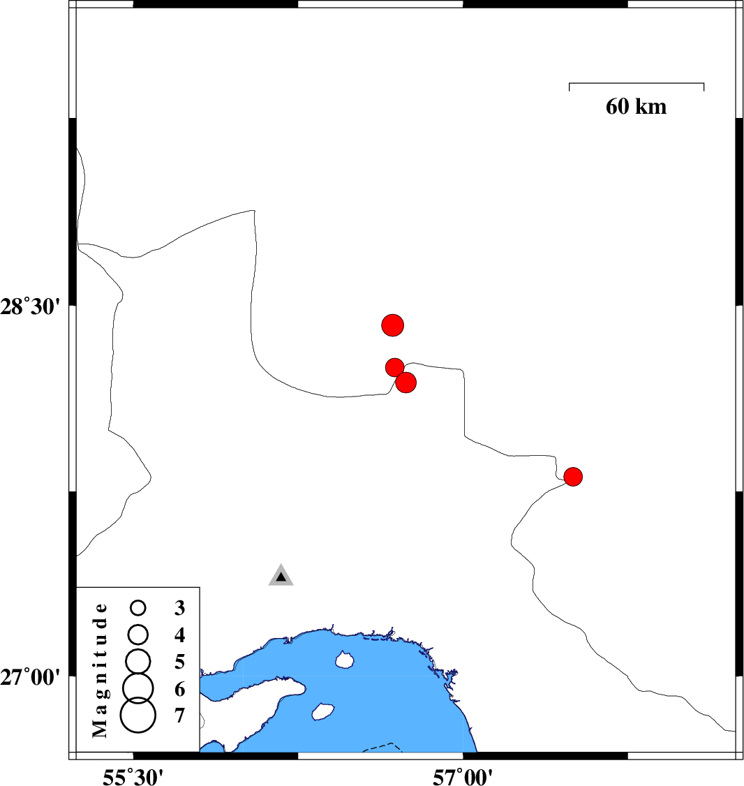 | 2007/08/28 | 08:44:02.0 | 12:14:02.0 | 27.81 | 57.5 | 15 | ML:3.8 | 24 km South-West of Kahnuj, Kerman Province | ||
