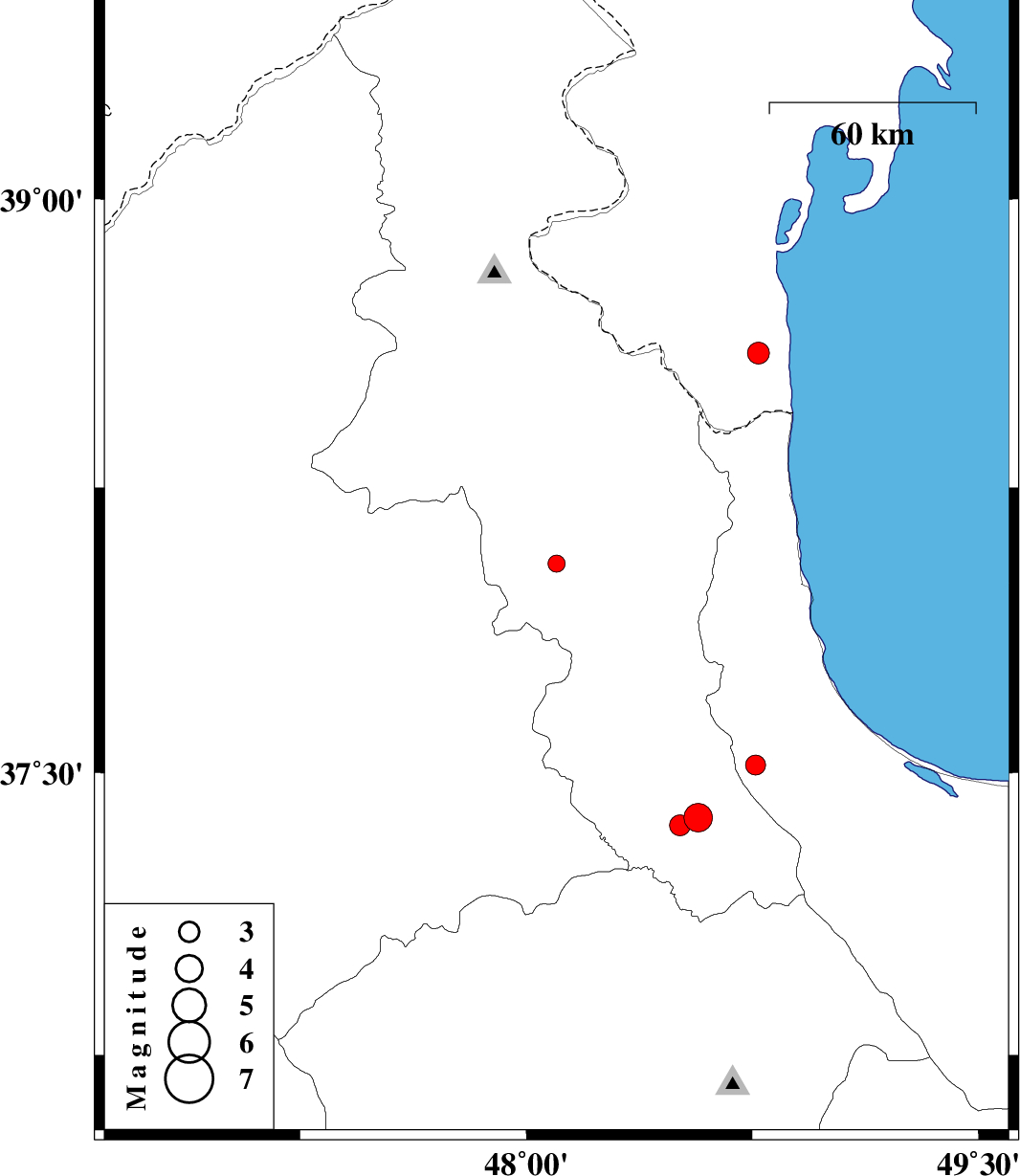 | 2007/09/19 | 18:59:36.8 | 22:29:36.8 | 38.6 | 48.77 | 15 | ML:3.2 | 21 km North of Astara, Gilan Province | ||