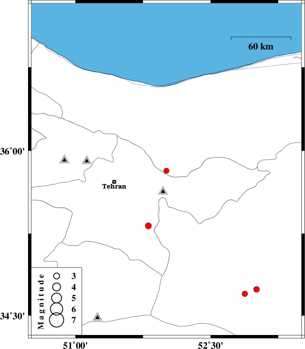 | 2007/10/06 | 10:15:16.1 | 13:45:16.1 | 35.82 | 52.01 | 15 | ML:2.7 | 12 km North of Damavand, Tehran Province | ||