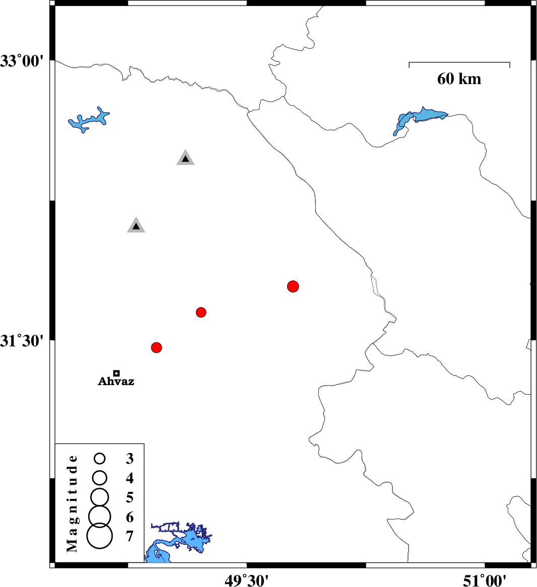 | 2007/10/20 | 03:11:23.0 | 06:41:23.0 | 31.46 | 48.93 | 10 | ML:3 | 28 km North-East of Ahvaz, Khoozestan Province | ||