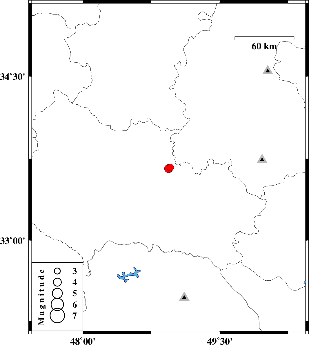 | 2007/11/08 | 09:45:44.5 | 13:15:44.5 | 33.67 | 48.96 | 14 | ML:3.4 | 22 km North-West of Dorud, Lorestan Province | ||
