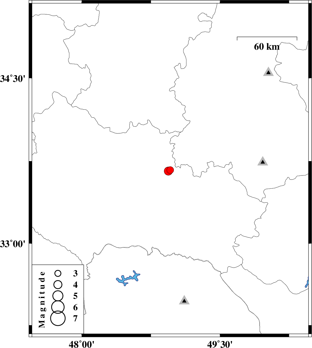 | 2007/11/08 | 09:40:37.7 | 13:10:37.7 | 33.66 | 48.94 | 15 | ML:4.1 | 23 km North-West of Dorud, Lorestan Province |