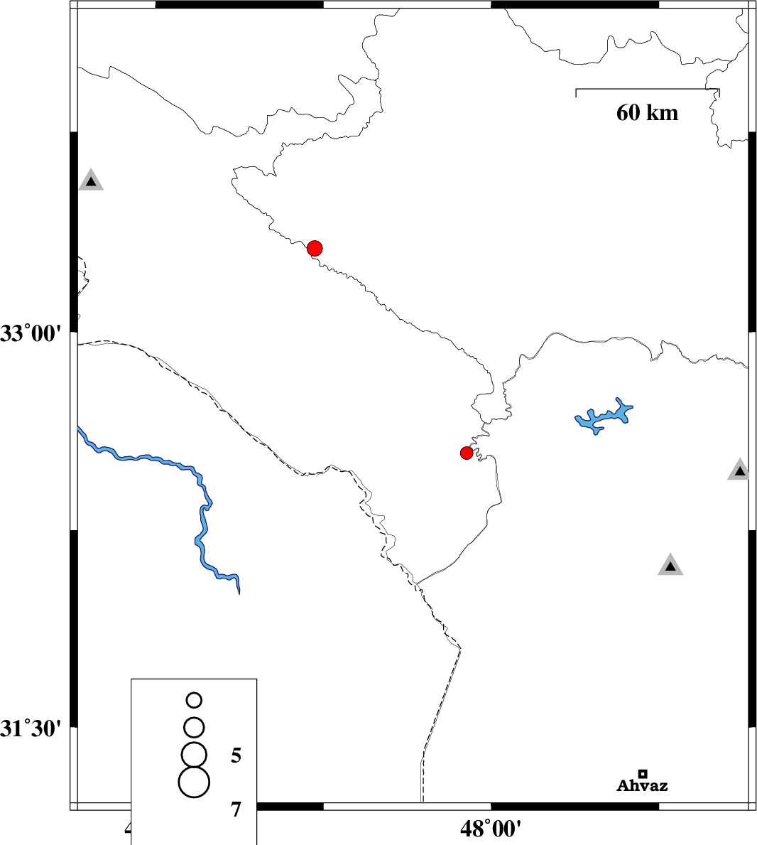 | 2007/11/11 | 11:06:46.1 | 14:36:46.1 | 32.71 | 47.65 | 14 | ML:2.6 | 29 km South-East of Abdanan, Ilam Province | ||