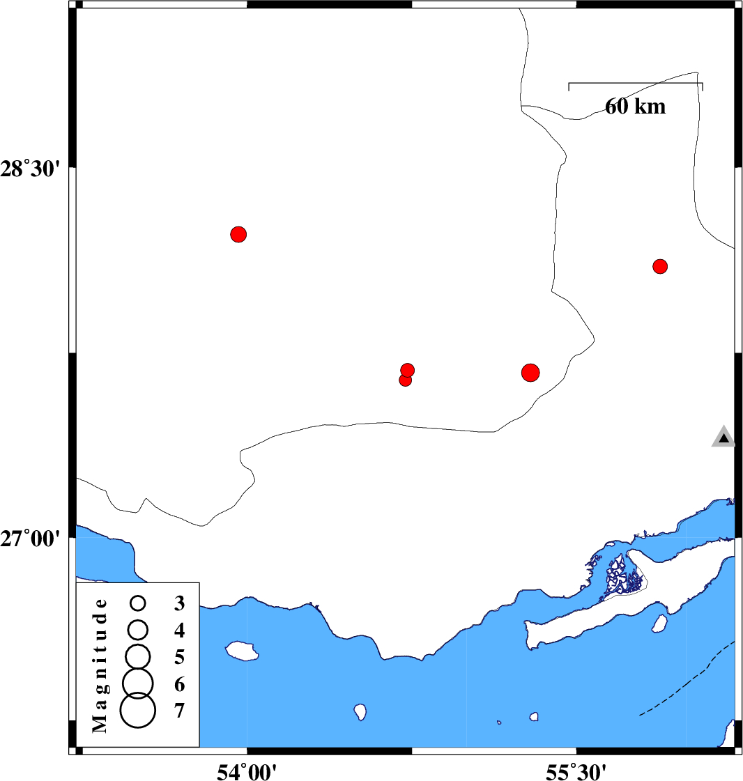 | 2007/11/20 | 09:15:34.7 | 12:45:34.7 | 27.64 | 54.72 | 15 | ML:2.5 | 37 km East of Lar, Fars Province | ||