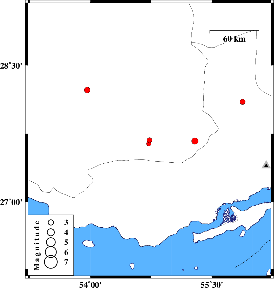 | 2007/11/20 | 09:15:34.7 | 12:45:34.7 | 27.64 | 54.72 | 15 | ML:2.5 | 37 km East of Lar, Fars Province | ||