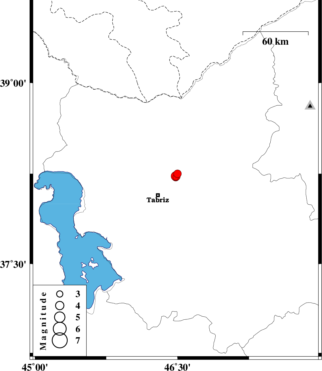 2007/12/02 10:00:01.4 13:30:01.4 38.2546.514 ML:3.6 26 km North-East of Tabriz, Azarbaijan Sharghi Province