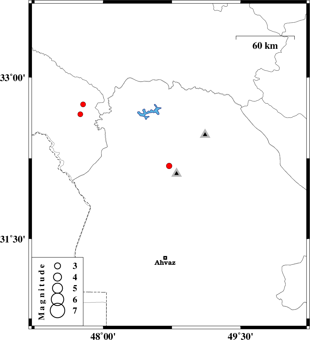 | 2007/12/12 | 09:56:46.7 | 13:26:46.7 | 32.66 | 47.75 | 14 | ML:2.5 | 40 km South-East of Abdanan, Ilam Province |
